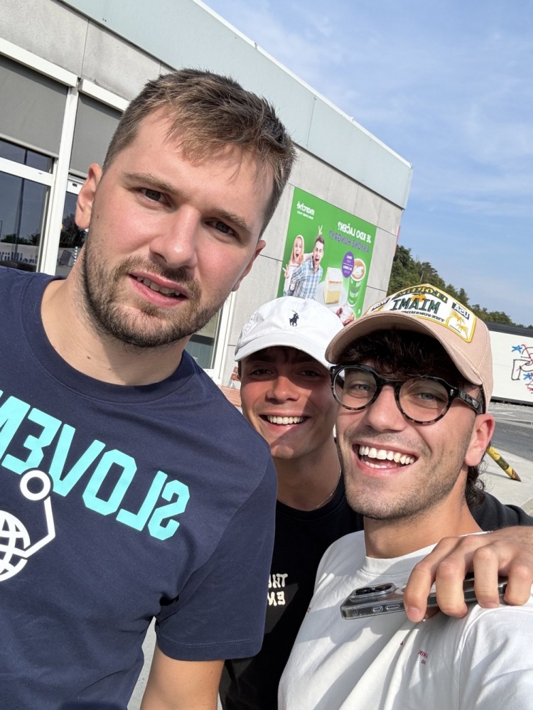 “今天早上,在斯洛文尼亚的高速服务区。我和朋友们去喝点。在吧台,一个穿着拖鞋的高个子男人,正在喝咖啡,和另一个男人在一起。我仔细一看,原来是东契奇……他瘦了33磅,我差点没认出他来,他真是太健壮了。我叫了声‘卢卡!’,他笑了,挥手示意我到外面来。在停车场,他跟我和我朋友们打招呼,并和每个人都合影。他说他在友谊赛上的伤并不严重,而且他对欧洲杯充满期待。他用意大利语跟我们打招呼,然后就离开了。生活真是奇妙……某一天,你在洛杉矶和湖人队一起训练,然后回到你在贝弗利山庄的豪宅;而另一天,你却穿着拖鞋在加油站和陌生的意大利人聊天。”这位意大利球迷如此描述道。